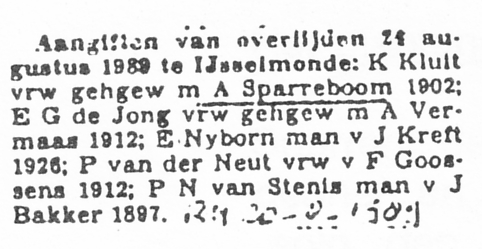 Overlijden - Klaartje Kluit--29-07-1902--18-08-1989--114.186.A14.2-Bron-2-Familieblad-1990-1-1