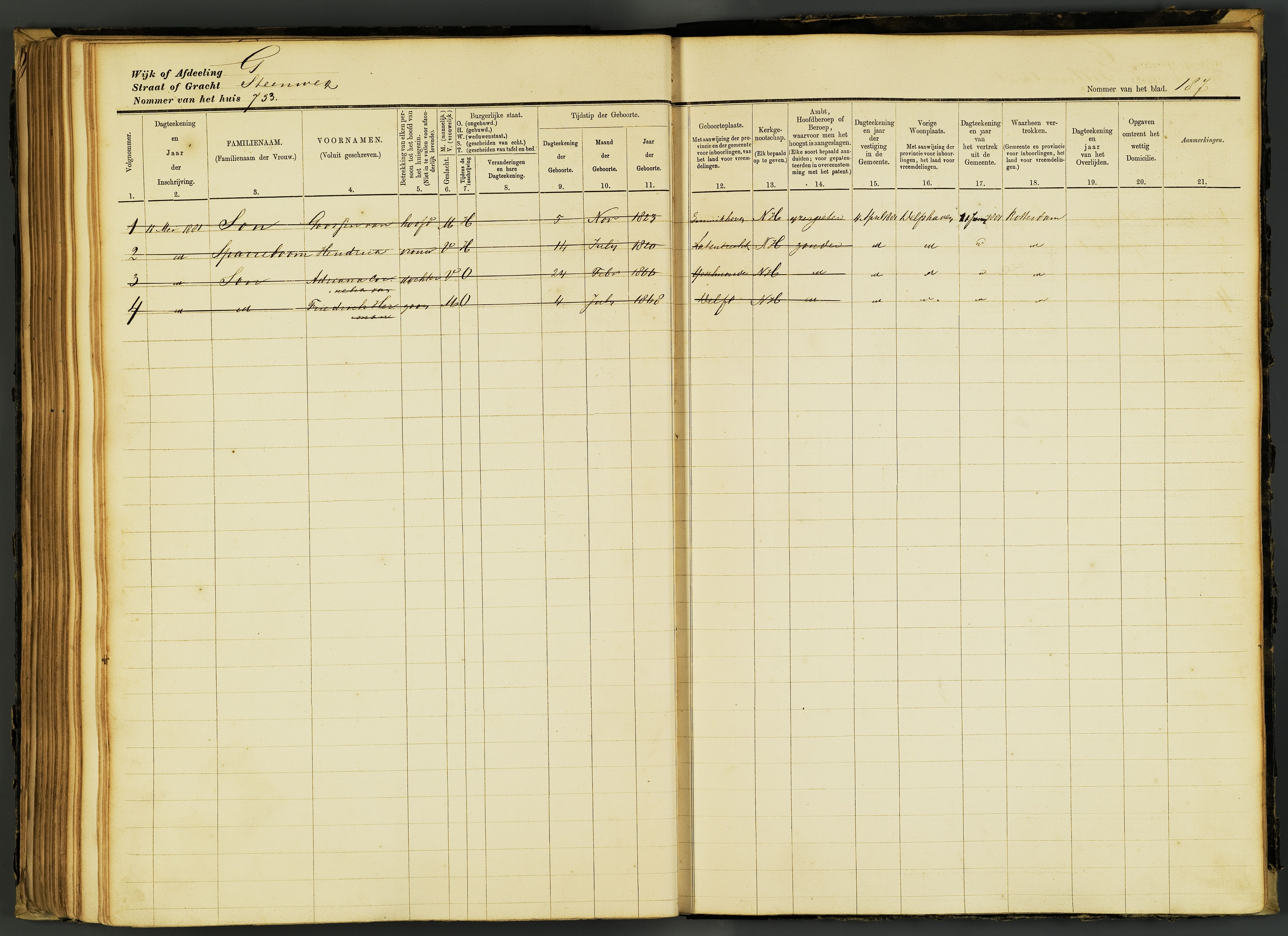 Gezinskaart - Hendrica Sparreboom--14-07-1820--Bron-Regionaal Archief Tilburg-Inv.nr 870 (oud nr. 9) 1880-1890 Wijk G-archiefnummer 2005-Bevolkingsregister Oosterhout-inventarisnummer 870-blad 185