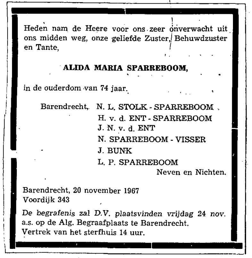 Overlijden - Alida Maria Sparreboom--29-07-1893--Bron-CBG Familieadvertenties