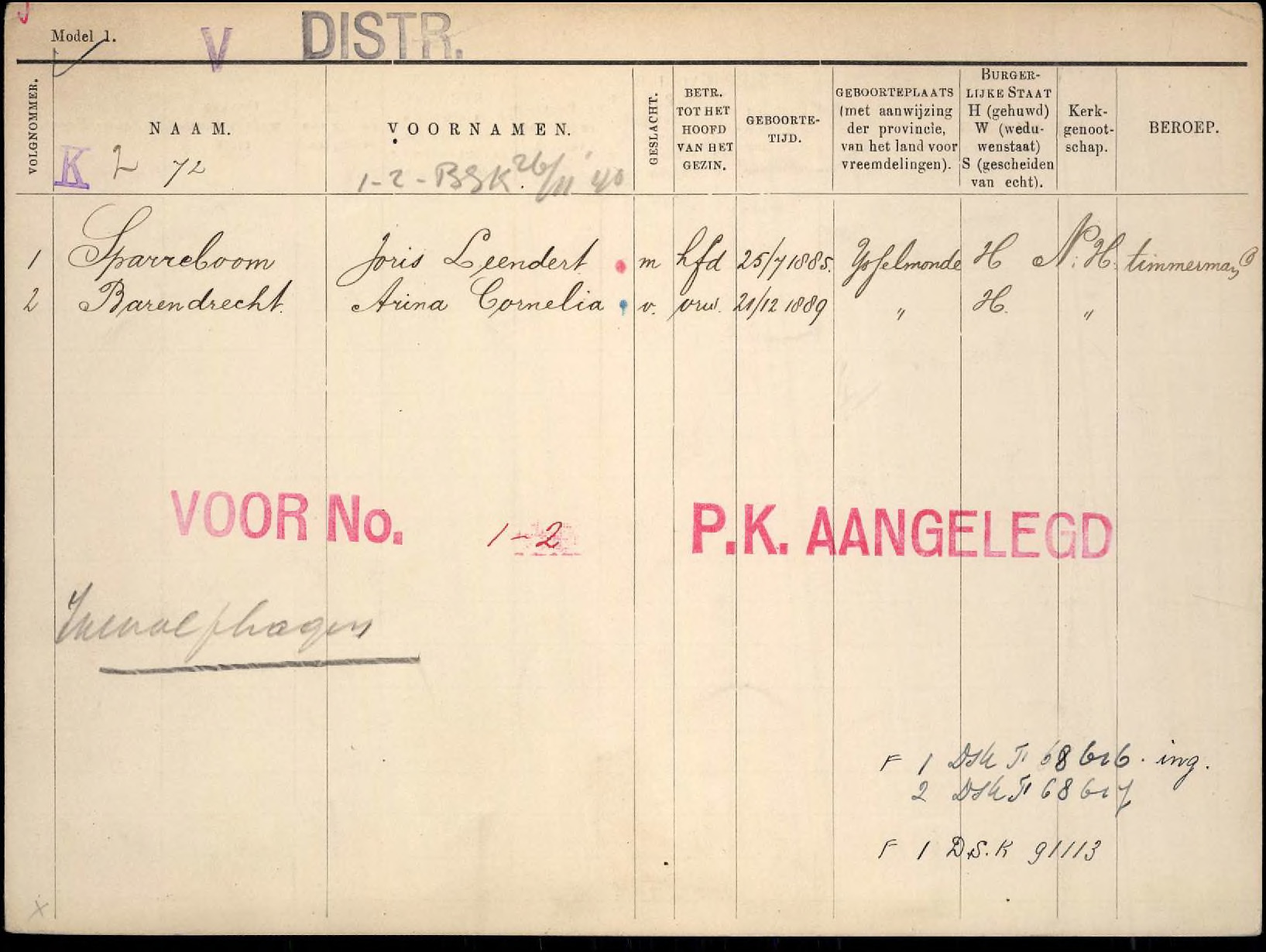 Gezinskaart - Joris Leendert Sparreboom--25-07-1885--Bron-Stadsarchief Rotterdam
